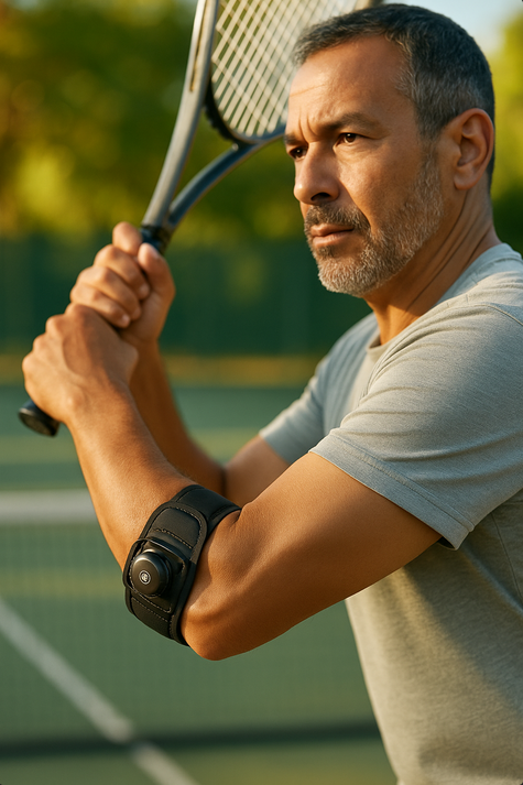 "After six weeks of inconsistent play due to pain, I can finally say I'm back. I've been using the Torque E1 for every session, and the difference is night and day. I'm hitting my serve with pace again and no longer have to ice my entire arm afterwards. It's given me the support to heal while still letting me play the game I love."
